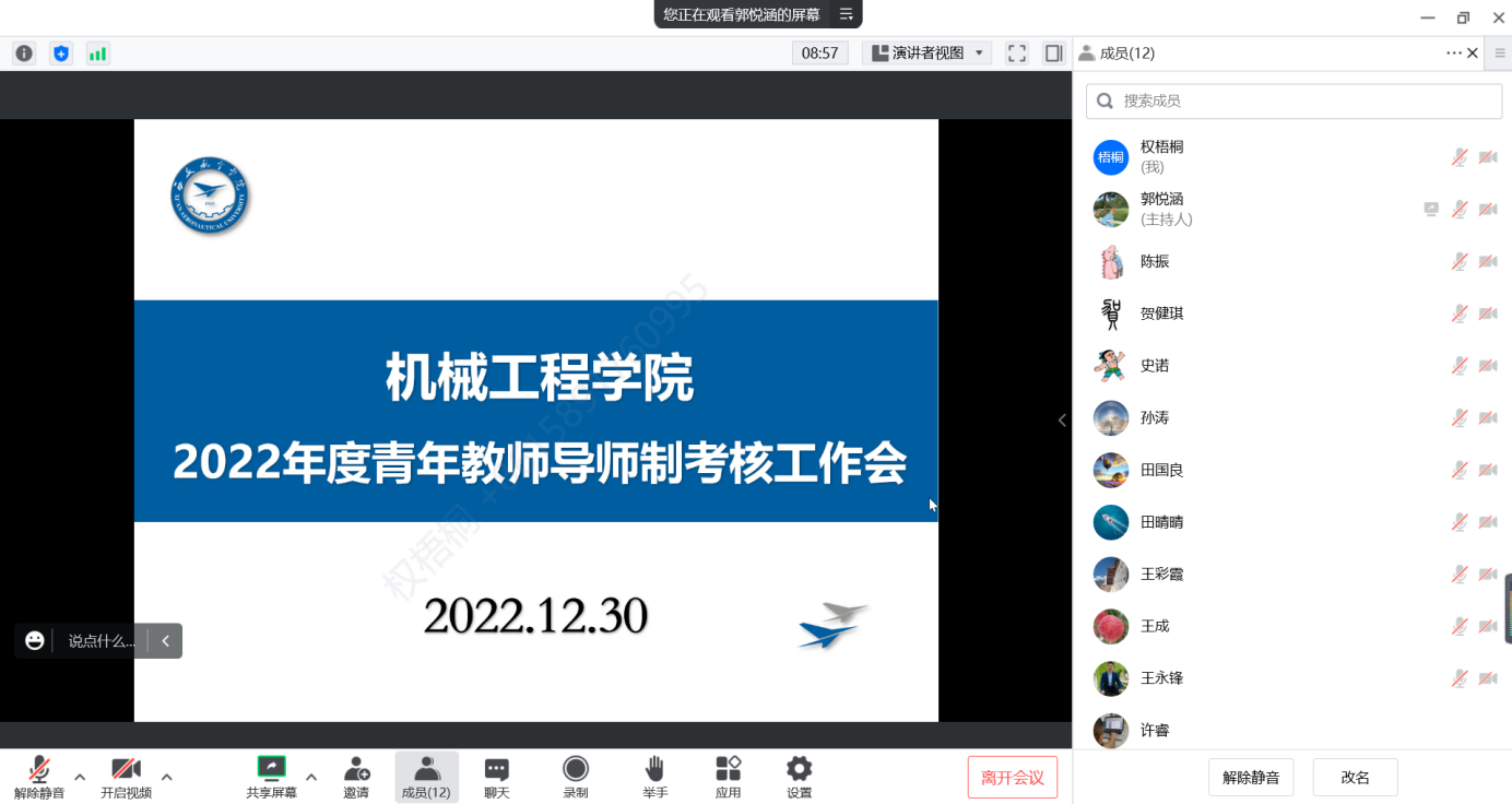 2022年12月30日,best365英国体育在线召开青年教师导师制考核工作会议。考核小组成员、考核对象和指导老师参加会议。会议由考核小组组长王永锋院长主持。