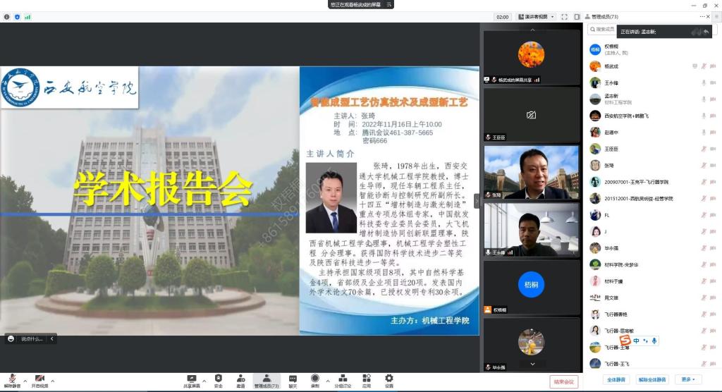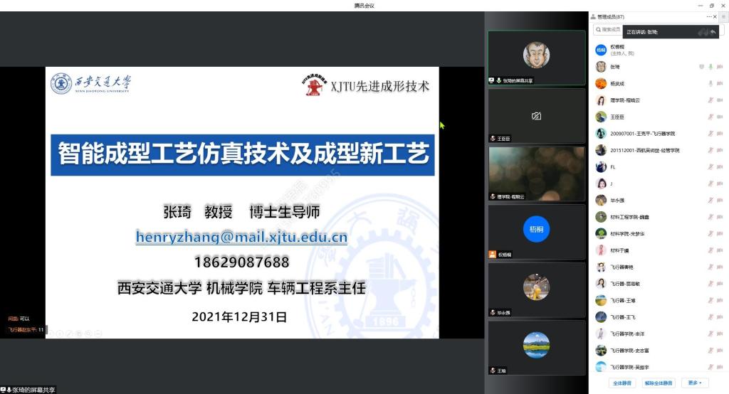 为进一步提升教师科研能力,了解机械学科前沿发展趋势,11月16日上午,best365英国体育在线特邀西安交通大学张琦教授以腾讯会议线上形式为我校师生做题目为《智能成型工艺仿真技术及成型新工艺》的学术报告。best365英国体育在线杨武成副院长主持会议,王永锋院长致欢迎词,best365英国体育在线教师及其他学院百余名教师在线参加了学术报告会议。