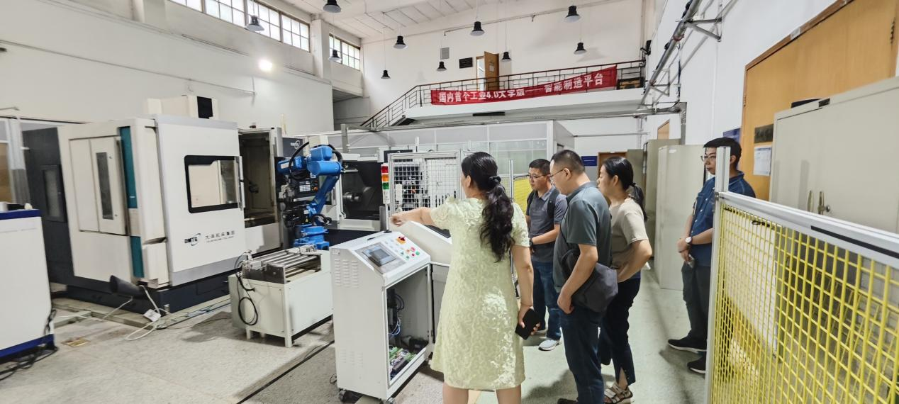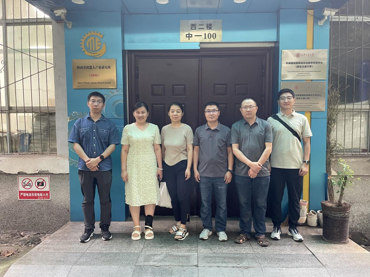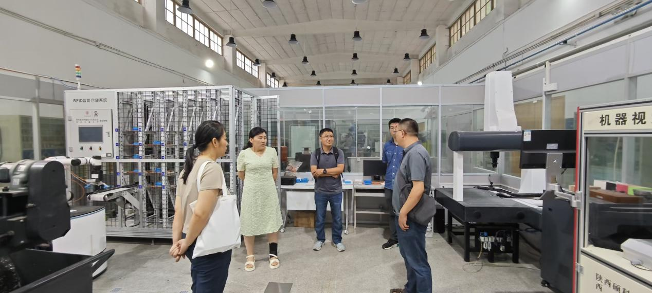 为提升智能制造大赛参赛水平,促进智能制造工程专业建设,2024年7月29日上午,我院智能制造教研室主任何洁,智能制造大赛负责人毕永强,相关指导教师彭琰举、王欢一行4人前往西安交通大学机械基础实验教学示范中心进行调研交流。