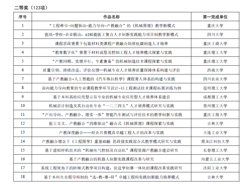 首届中国机械行业产教融合教育教学创新大赛由中国机械工程学会、中国机械行业卓越工程师教育联盟主办,以“教学创新推升高质量育人,产教融合激发新质生产力”为主题,设本科组、研究生组,每组按课程类和体系类赛道分别进行评选。
