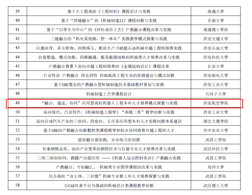 本届比赛全国共有311项作品参赛,最终获得区域赛奖项的有包含我校以及西安交通大学、西北工业大学、西安工业大学等院校的21件作品,其中本校机械学院参赛作品“融合,递进,协同”应用型高校机器人工程本科人才培养模式探索与实践”获得区域赛二等奖,作品成果报告主要围绕机器人工程专业领域理论课及实践课相关教学内容、平台资源建设与教学模式等创新,聚焦于解决教学真问题、提高教学成效并推广,充分展现了我校教师队伍扎实的专业素养和与行业企业协同育人的成效。