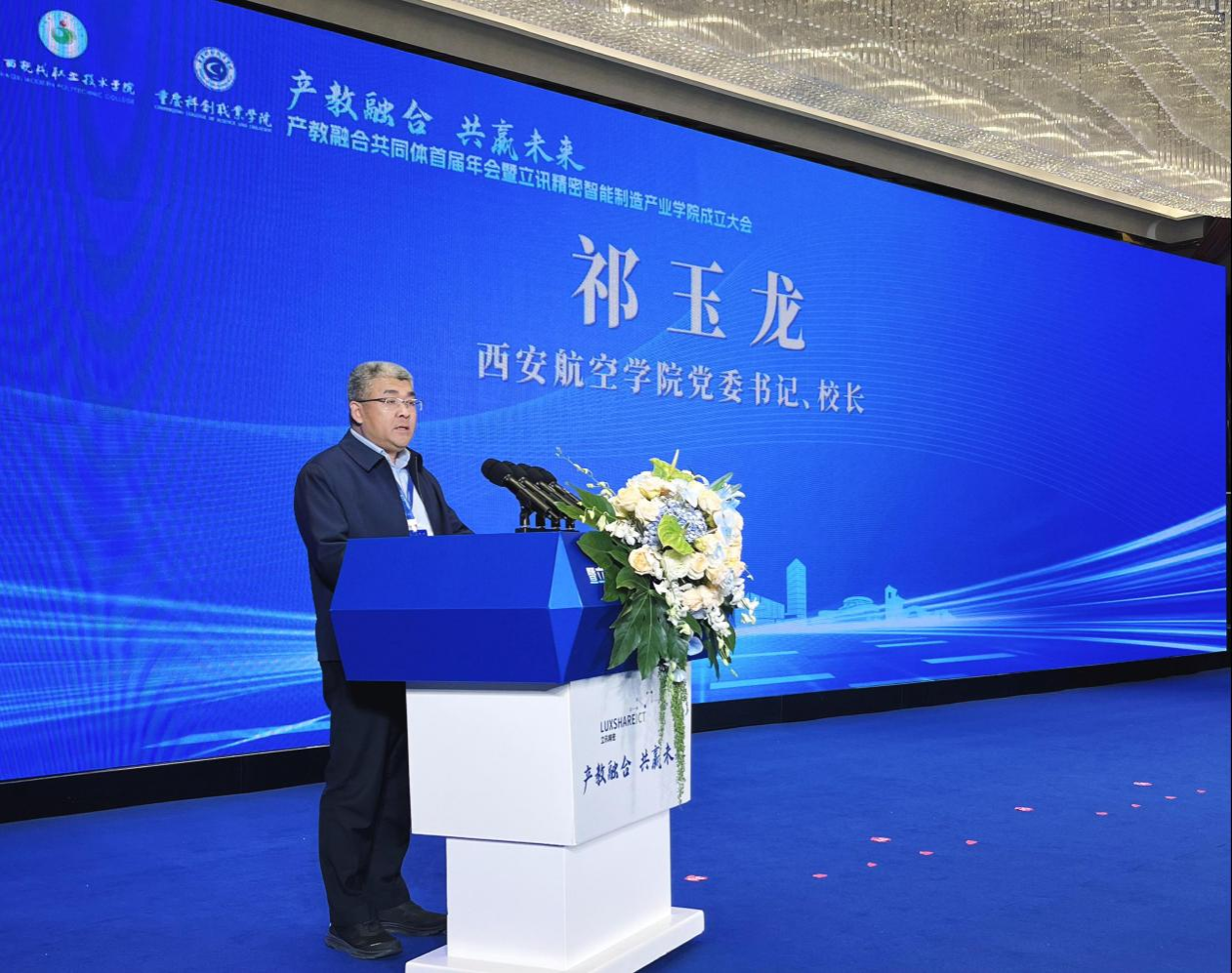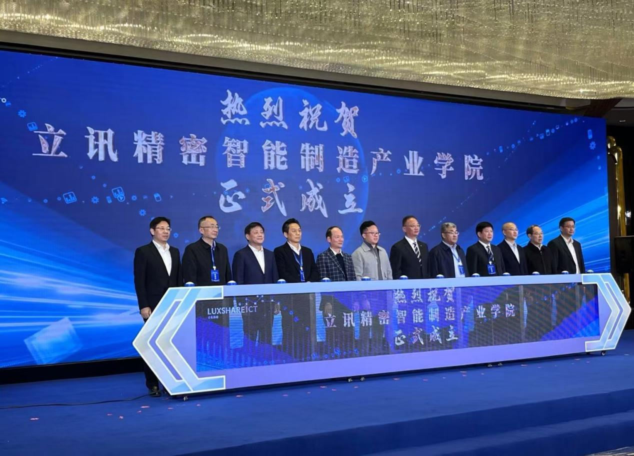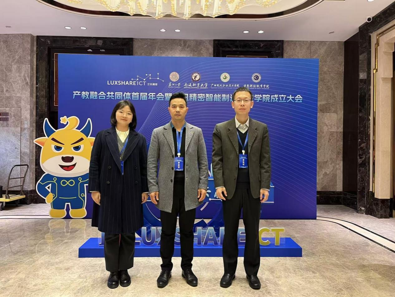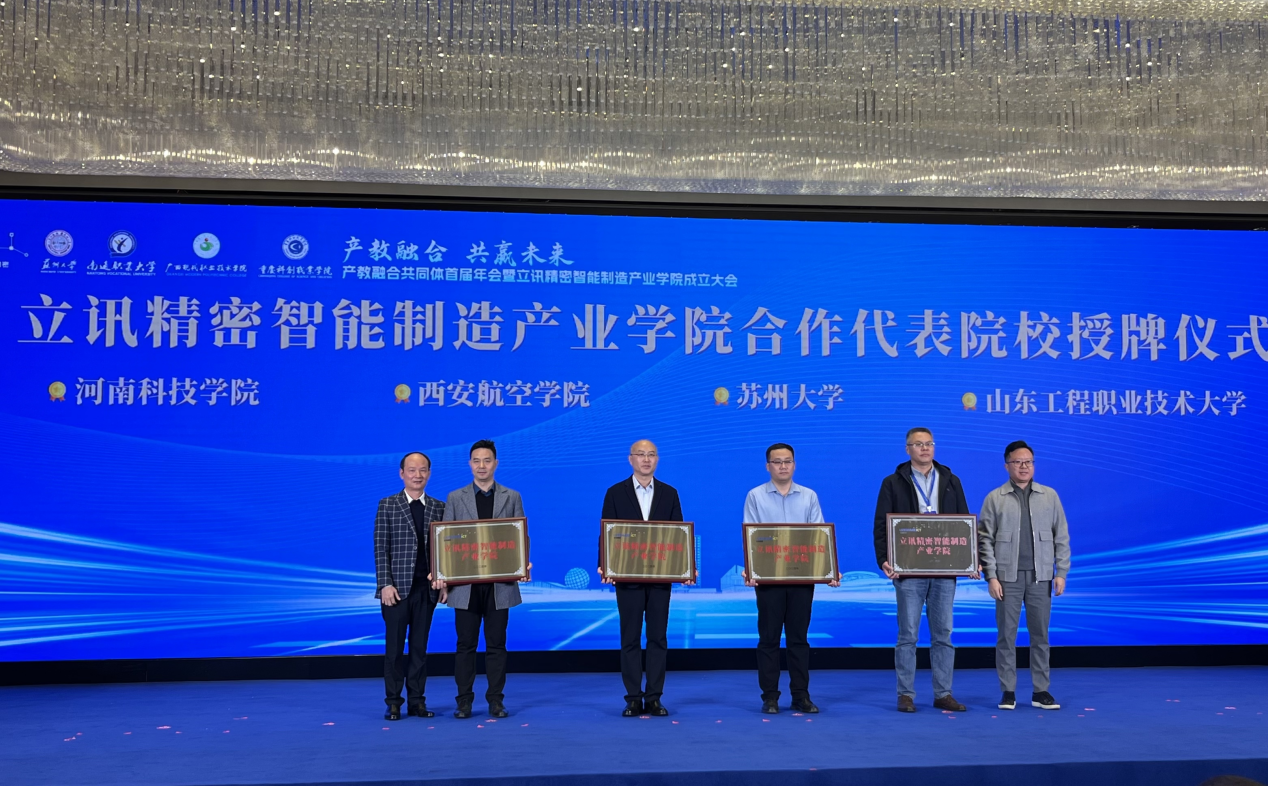 11月28日至29日,主题为“立讯携手,产教融合启新程——共绘未来蓝图,赋能产业创新”产教融合共同体首届年会暨立讯精密智能制造产业学院成立大会在昆山举行,会议由立讯集团、苏州大学等主办,参会单位来自全国各地20多家本科高校和40多家职业院校。我校党委书记、校长祁玉龙应邀参加大会并致辞。best365英国体育在线院长王永锋、副书记刘欣、综合办主任郭悦涵参加了与立讯集团的签约和授牌仪式。