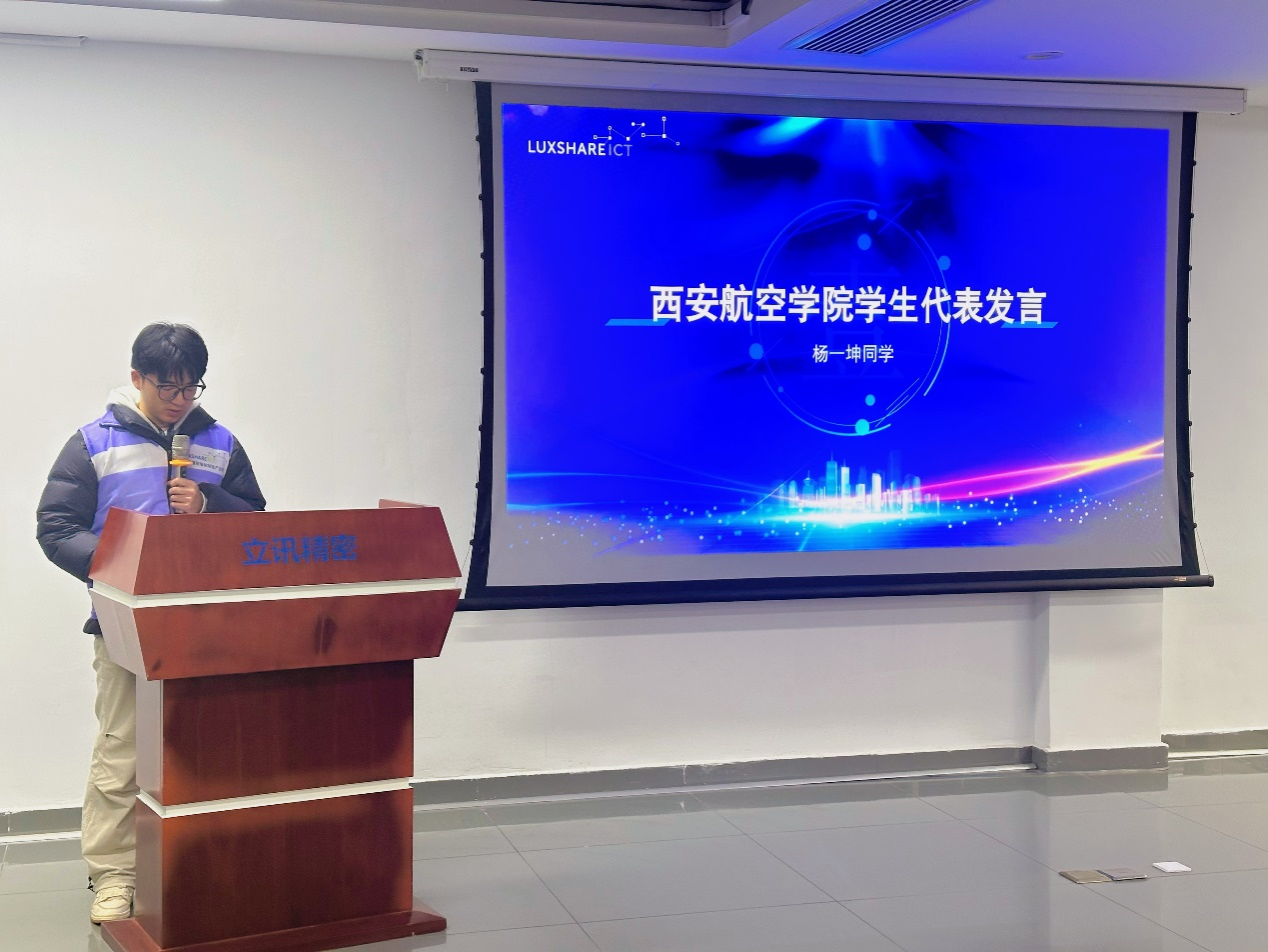 学生代表杨一坤同学满怀感激之情,对立讯精密智能制造产业学院及立讯机器人提供的学习与实践机会表示由衷的感谢,并郑重承诺将珍惜这次宝贵的学习机会,努力学习专业知识,积极参与实践训练,不断提升自己的综合素质与能力水平。
