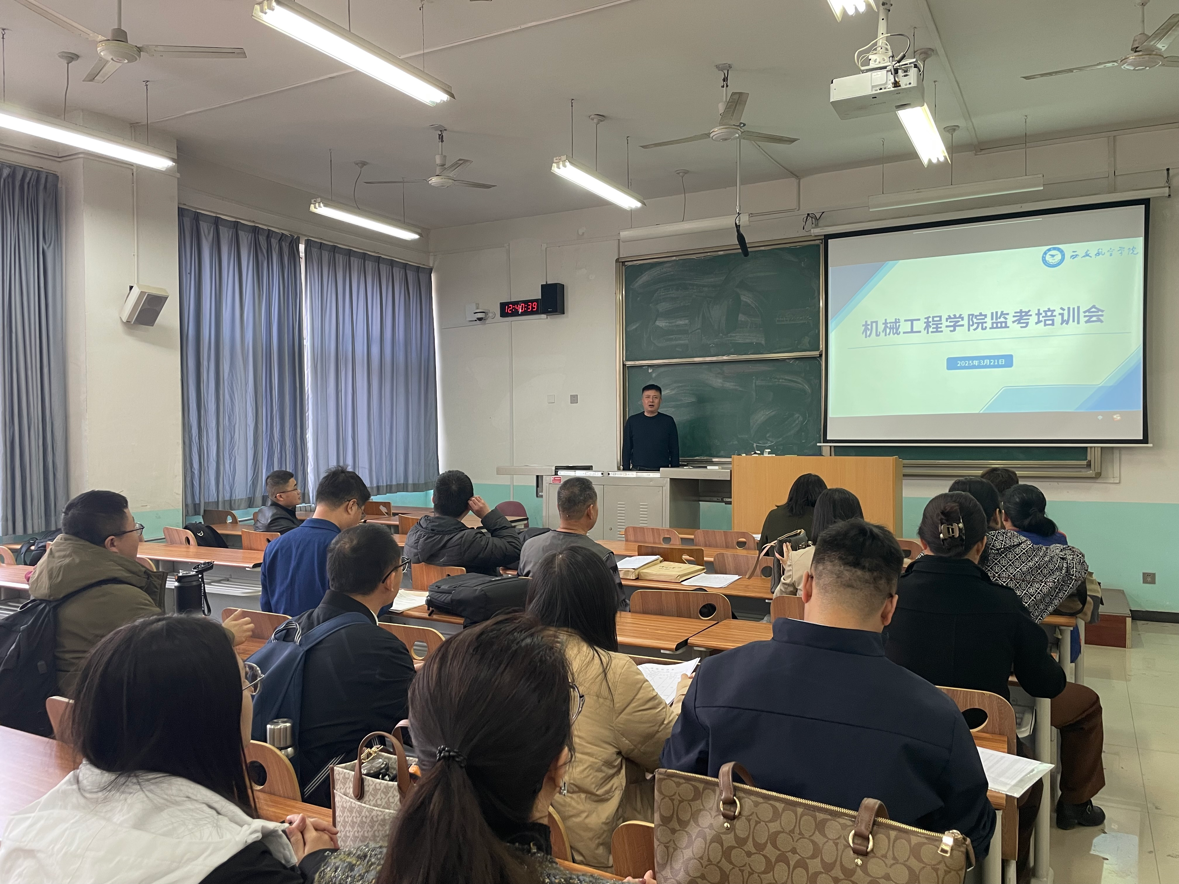 教学副院长李懿结合学校《西安航空学院课程考核管理办法》、《best365英国体育在线监考巡考补充办法》等文件,重点培训考场标准化管理流程,要求考前严格执行考场清理程序,运用金属探测仪对电子设备进行二次筛查;考中规范执行试卷启封、身份核验、考场巡查等多项标准化操作;考后完善违纪行为“认定—取证—处置—归档”闭环管理体系。