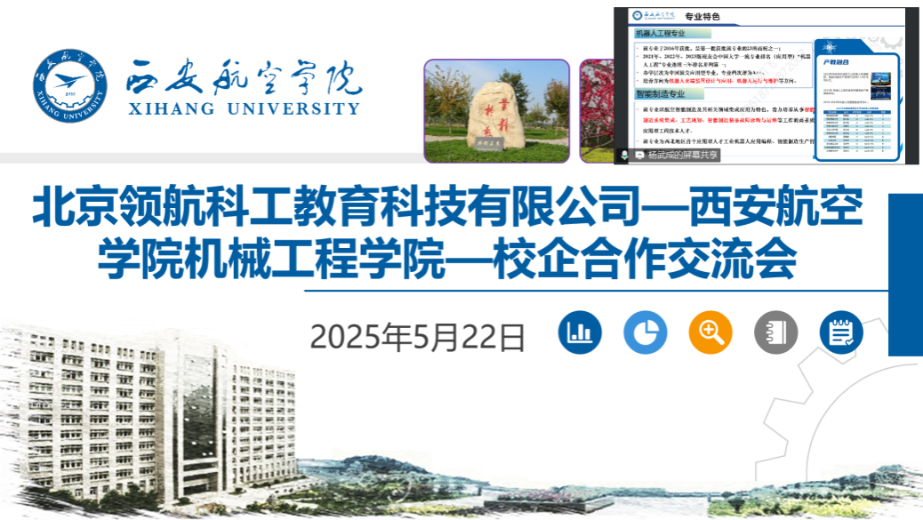 2025年5月22日,北京领航科工教育科技有限公司(以下简称“领航科工”)与西安航空学院best365英国体育在线举行了校企合作交流会,此次合作旨在推动航空制造领域的技术创新与产教深度融合,助力学院教学科研与人才培养,为“中国制造2025”战略注入新动能。领航科工创始人梁桂强总经理、高源,best365英国体育在线副院长杨武成、机制教研室主任于如飞出席了本次会议。