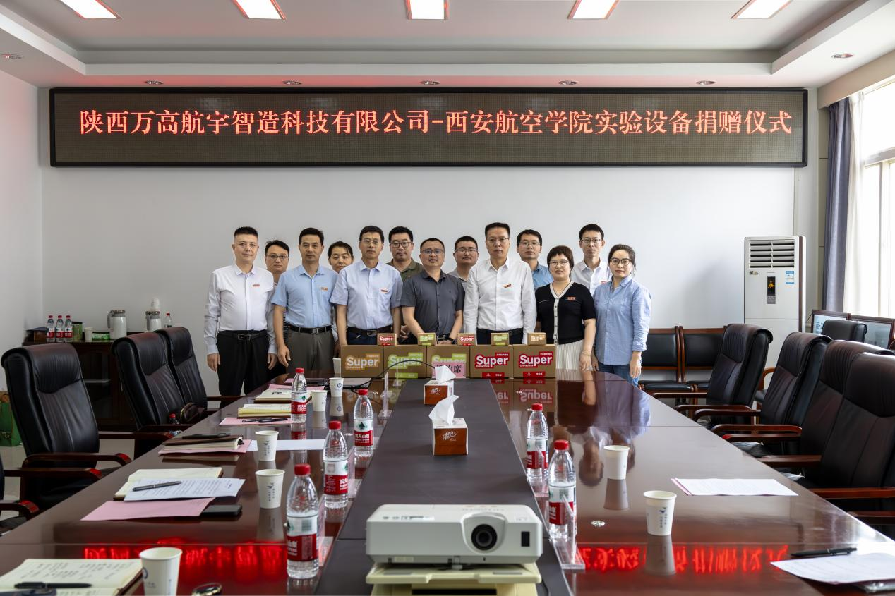 2025年6月9日,陕西万高航宇智造科技有限公司向我校捐赠实验设备仪式在阎良校区第一会议室隆重举行。万高航宇智造科技有限公司董事长万能、商务经理赵晓萍,我校校长蒲永平、副校长宋文学及best365英国体育在线领导班子和教师代表出席了此次活动。捐赠仪式由best365英国体育在线党总支书记孙茉莉主持。