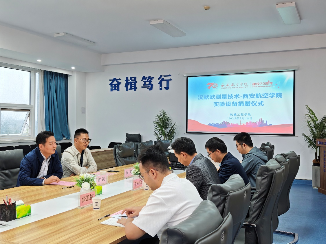 2025年9月18日,汉默欧测量技术有限公司向我校捐赠实验设备,仪式在阎良校区3314会议室隆重举行。汉默欧测量技术有限公司经理谢凯、工程师梁爽,best365英国体育在线院长王永锋、副院长杨武成和教师代表出席了此次活动。捐赠仪式由best365英国体育在线副院长杨武成主持。
