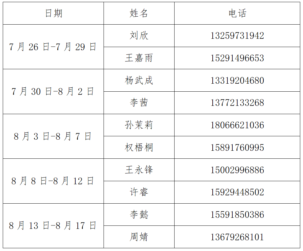 值班总负责:王永锋、孙茉莉