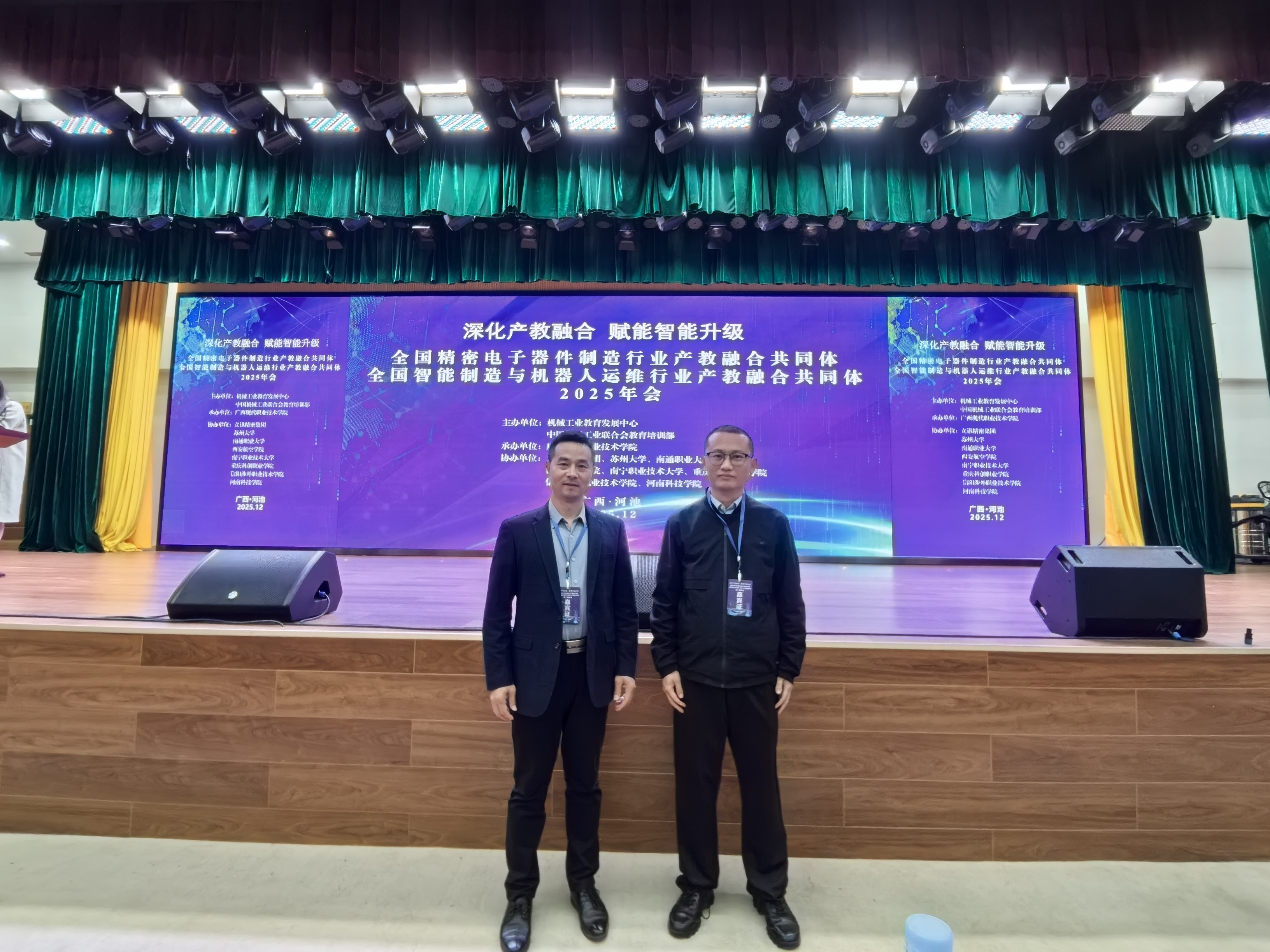 为深入贯彻国家产教融合发展战略,推动智能制造与机器人运维领域人才培养与产业需求精准对接,强化校地校企协同育人机制,提升机械工程学科专业建设水平,2025年12月26日至27日,全国智能制造与机器人运维行业产教融合共同体年会在广西河池隆重召开。西安航空学院best365英国体育在线院长王永锋、智能制造工程教研室主任田国良受邀参会,与来自全国相关高校、行业龙头企业、科研院所的专家学者齐聚一堂,共同探讨该领域产教融合的创新路径、人才培养痛点及行业发展新趋势。