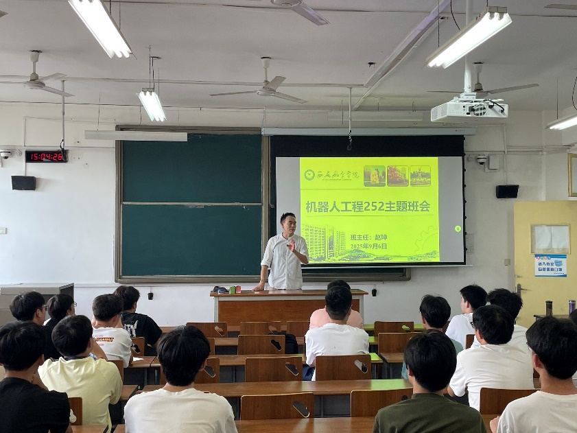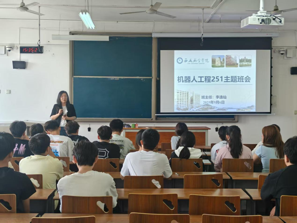 2025年9月6日,机器人工程专业在1436教室召开2025级新生见面会。机器人工程教研室主任、机器人251班主任李逸仙、机器人252班主任赵坤、机器人工程专业负责人王莹以及骨干教师王鹏参加此次会议。