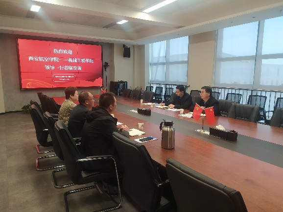 在随后的座谈交流会上,王云平书记致辞,对best365英国体育在线一行表示热烈欢迎,刘晓刚副总经理和左鹏军党委委员分别介绍了陕西省机械研究院的发展历程、技术现状以及主营产品和业务范围。王永锋院长和杨武成副院长分别介绍了西安航空关于我们、best365英国体育在线的学科专业和办学特色以及学院的科研团队、科研方向和科研合作设想。