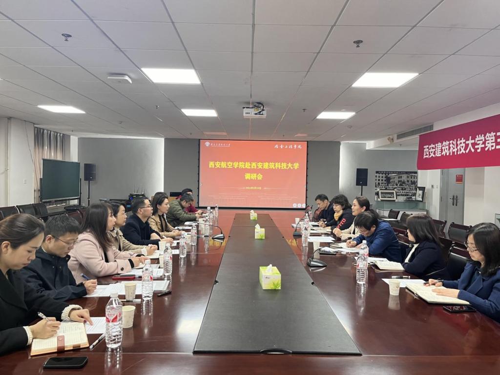 韩芸介绍西安建筑科技大学工程教育认证工作情况,杨西荣对冶金工程学院工程教育认证工作进展及相关经验做法进行介绍。刘宁介绍我校工程教育认证开展情况及本次调研安排,杨武成对机械电子专业进展情况进行简要介绍。双方就工作教育认证理念、标准规范、支撑材料梳理、专家考查等认证各环节注意事项等进行深入交流。
