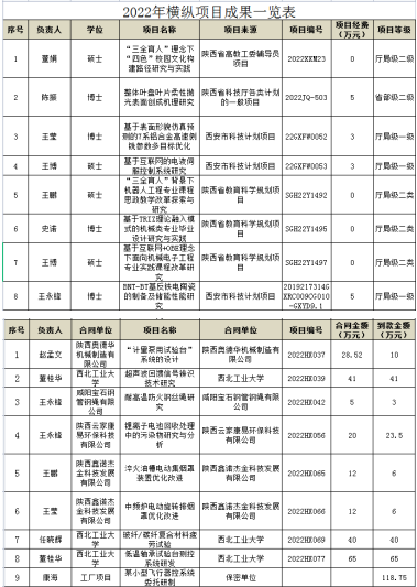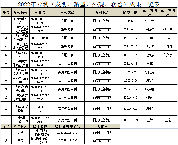 best365英国体育在线在校级科研平台——机电技术研究所的基础上,成立 6个科研团队:高端数控装备创新研发团队、工业机器人末端执行器设计及控制技术应用科研团队、航空材料力学性能分析与表征科研团队、航空先进制造系统集成及其自动化科研团队、航空液压装备设计与测试科研团队、新质装备技术及应用科研团队。2022 年best365英国体育在线积极申报各类项目 41 余项,获 4批陕西省科技厅项目 1 项、西安市科技局 2 项,校级基金立项 8 项; 纵向项目到款 10.5 万元;结题 6 项,其中国家级 1 项,厅局级 3 项, 校级 2 项;横向项目:签订横向课题 13 项,合同金额 384.02 万元, 到款额 313.25 万元;其他:发表各类学术论文 10 篇,其中 SCI 1 篇, CSCD 检索 2 篇,核心论文 15 篇,普刊 1 篇;授权发明专利 5 件、实用新型专利 8 件。