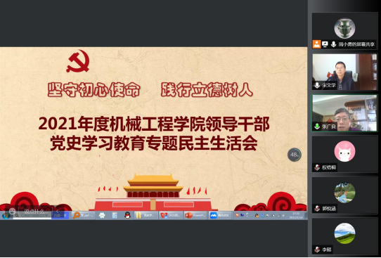 2022年3月14日,best365英国体育在线按照校党委工作安排,召开线上学院领导班子党史学习教育专题民主生活会。宋文学副校长出席并指导工作。学院领导及党总支委员参加会议。学院党总支书记周小勇主持会议。