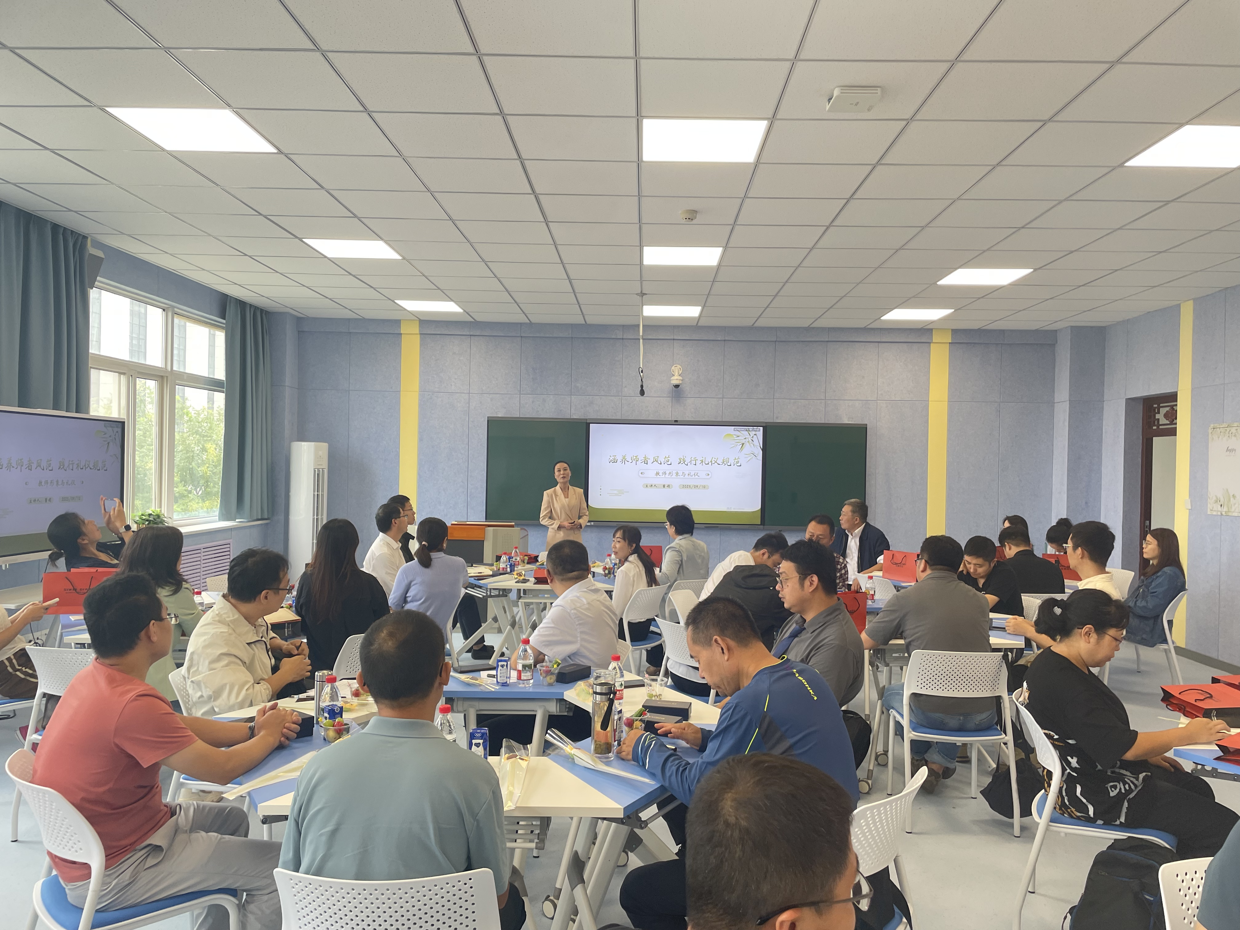 为塑造良好的教师职业形象,助力学校70周年校庆的成功举办,全方位迎接审核评估与硕士学位点建设,2025年9月10日上午,best365英国体育在线分会在阎良校区3号实验楼3316智慧教室隆重举办教师职业形象提升专题讲座。本次讲座特邀资深礼仪培训师董娟担任主讲,学院全体教职工80余人参加聆听学习。