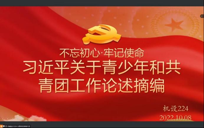 2022级新生在各班团支书的带领下,学习了解了习近平新时代中国特色社会主义思想、党的十九大精神和团的十八大精神。同学们深刻了解到中共十九大确立的中国共产党的行动指南深刻领会“新时代”的丰富内涵,准确把握我国发展新的历史方位,更好地肩负起新时代的历史使命。