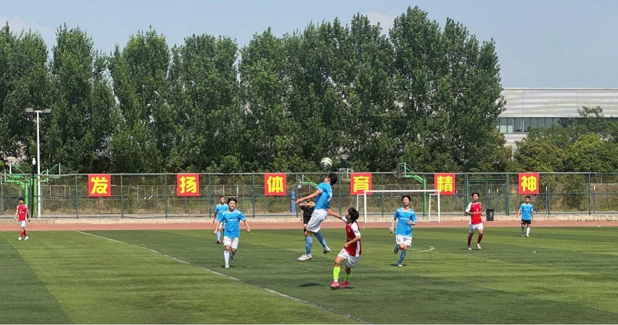 随着哨声的响起,决赛正式开始。此时,这片绿茵承载的不仅是他们挥洒的汗水,更是顽强拼搏的精神。不论是呐喊的观众,还是驰骋的健儿,都在为这场校庆之赛添上更好的姿色。在这炎炎夏日,运动健儿们没有丝毫的退缩,反而点燃了他们心中的激情,迸发出更加坚毅顽强的精神。哨声响起,上半场结束,比分定格在0:0。双方攻防转换激烈,每一次奋力争顶的头球都让悬念加剧,每一次关键的封堵解围都彰显着永不放弃的信念。门前风声鹤唳的瞬间,总能引爆全场更疯狂的呐喊,这正是“飞豹杯”的魅力所在。