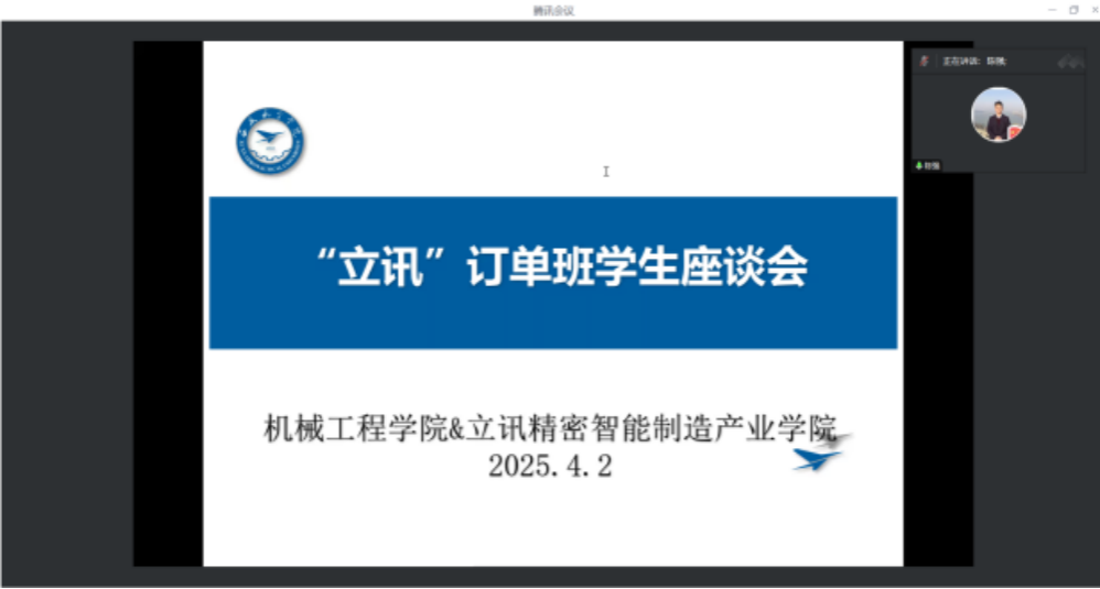 为加强校企合作订单班实践教学管理,切实保障学生权益,4月3日,我院通过腾讯会议平台组织召开“立讯”订单班学生座谈会。立讯精密智能制造产业学院主管陈强、教师苗欣、陈永富,best365英国体育在线副院长李懿、党总支副书记刘欣、2022级辅导员成航及订单班全体学生参会。会议聚焦学生关切问题,旨在优化培养方案,提升校企协同育人实效。